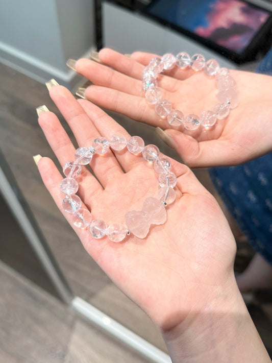 Blush Light – Pink A'Sei Quartz Bracelet with Carved Rose Quartz Bow