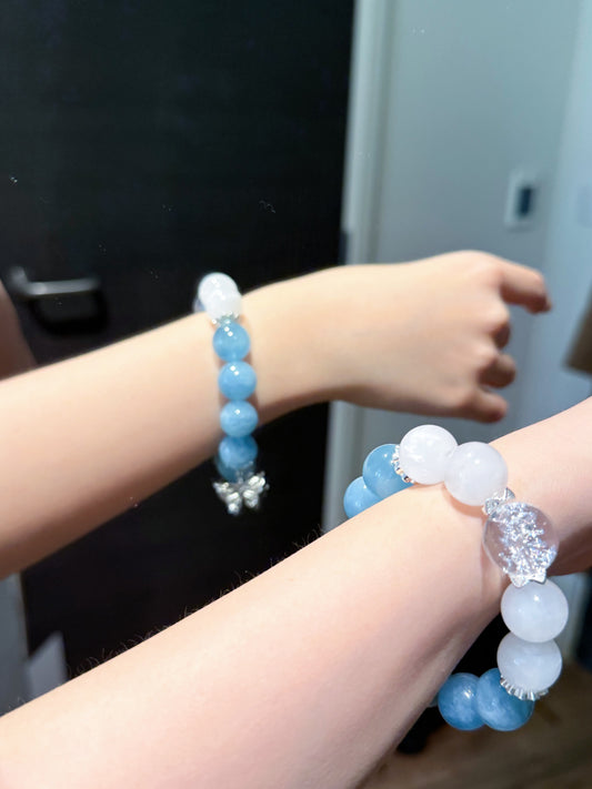 Mt. Fuji Serenity Crystal Bracelet – Snow Phantom Quartz & Aquamarine Harmony