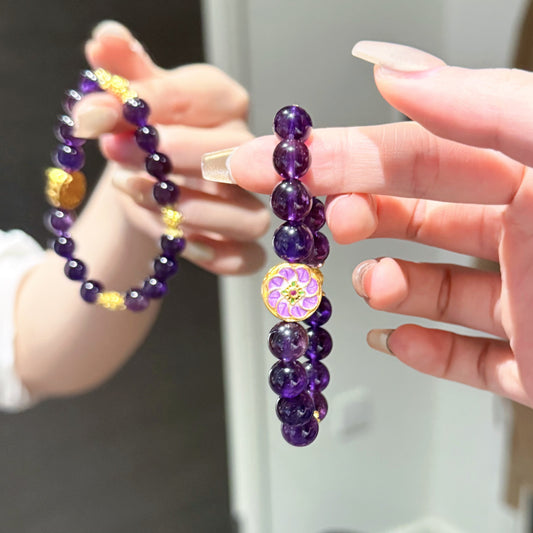 Focus Fortune – Mini Uruguayan Amethyst Bracelet with 14K Gold Prosperity Disc