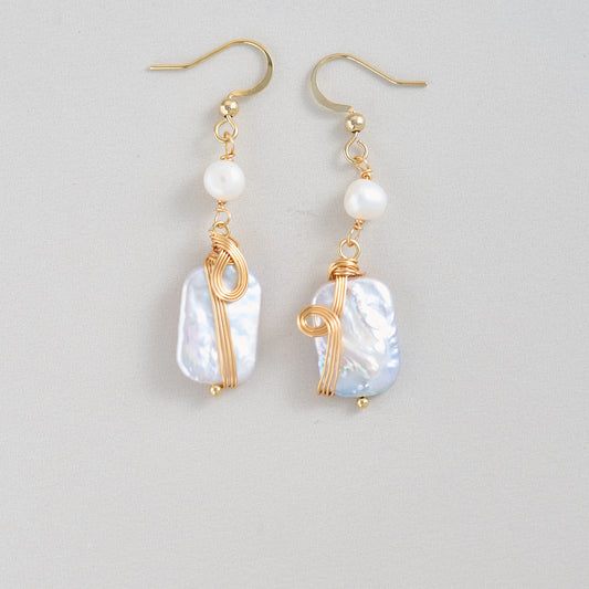 Handmade Baroque Pearl Drop Earrings | 14K Gold-Filled Wire Wrapped | Freshwater Pearl Dangle Earrings | Elegant Bridal Jewelry