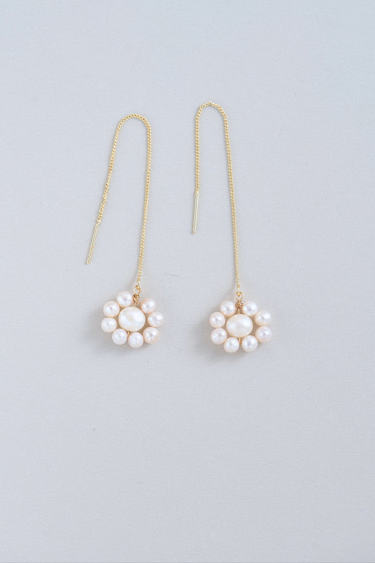 Handmade Freshwater Pearl Daisy Threader Earrings | 14k Gold-Filled Wire | Delicate Flower Dangle Earrings for Women