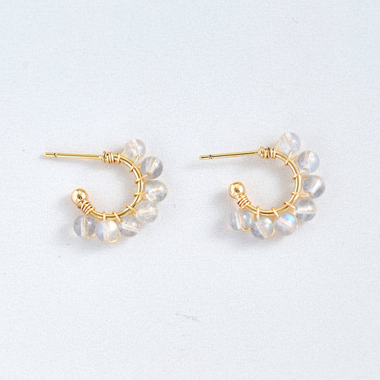 Natural Labradorite Hoop Earrings | Handmade 14K Gold-Filled Wire Wrapped | Delicate Minimalist Crystal Jewelry