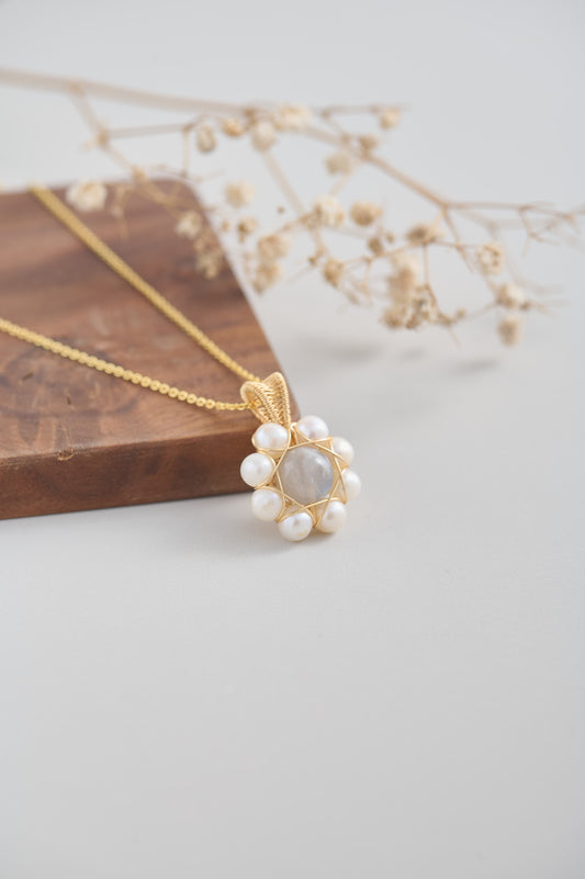Handmade Labradorite and Freshwater Pearl Pendant Necklace – 14k Gold-Filled Wire Wrapped, Adjustable Length